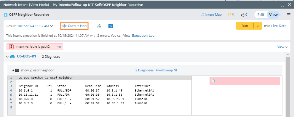 - Enter the NI View Mode and click Output Map to view the intent result on the current map.