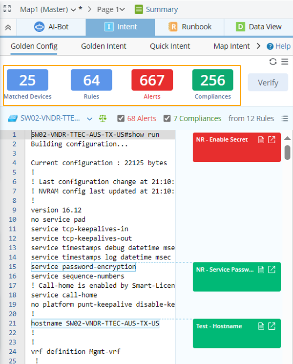 - The total number of map devices that match with the Golden Config Rules.