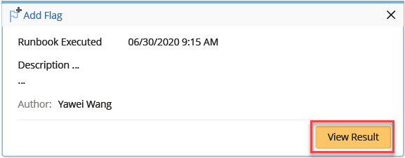 In the summary view, you can click on View Result to open the respective Runbook and check the execution result of each Runbook Node.