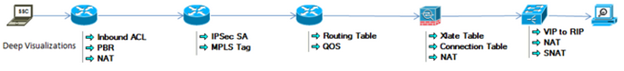 NetworkBrain Path Calculator emulates the real packet forwarding process in your live network (including overlay and underlay networks) to map the forwarding path. It also enables you to baseline, document, and define the diagnosis logic for the application path efficiently when the network is healthy. Then this well-documented and executable knowledge can help you resolve application slowness issues more efficiently and do effective application impact analysis when a problem occurs on a network device or device interface.