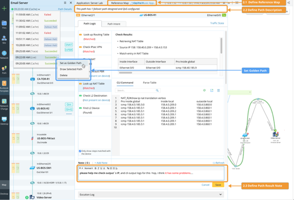 AAM allows users to document the application paths while the network is healthy, including the expected (Golden) paths, the reference map, path nodes and path NIs.