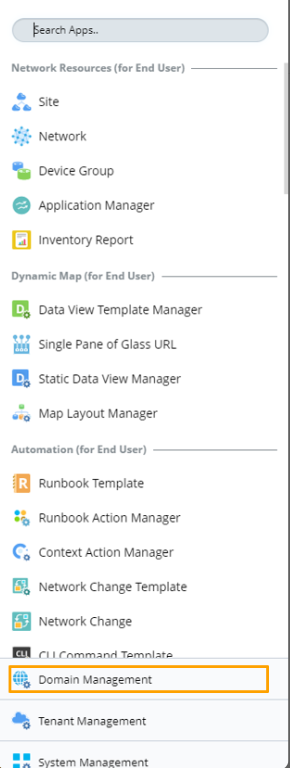at the upper-left corner and you can find Domain Management at the bottom of the menu.