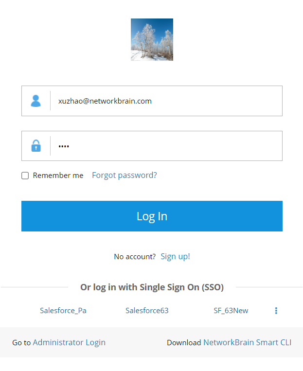 - In your web browser, navigate to http(s)://<Hostname or IP address of NetworkBrain Application Server>/.