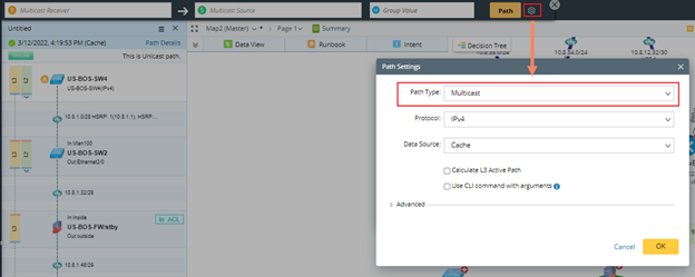 Tip: To configure the data source, protocol, and other advanced settings for path calculation, click the