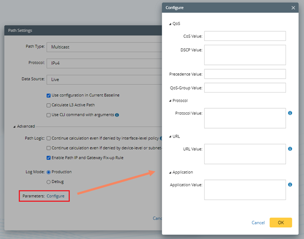 You can define the ways to handle ACL or Policy and gateway during a path calculation in the Advanced Settings: