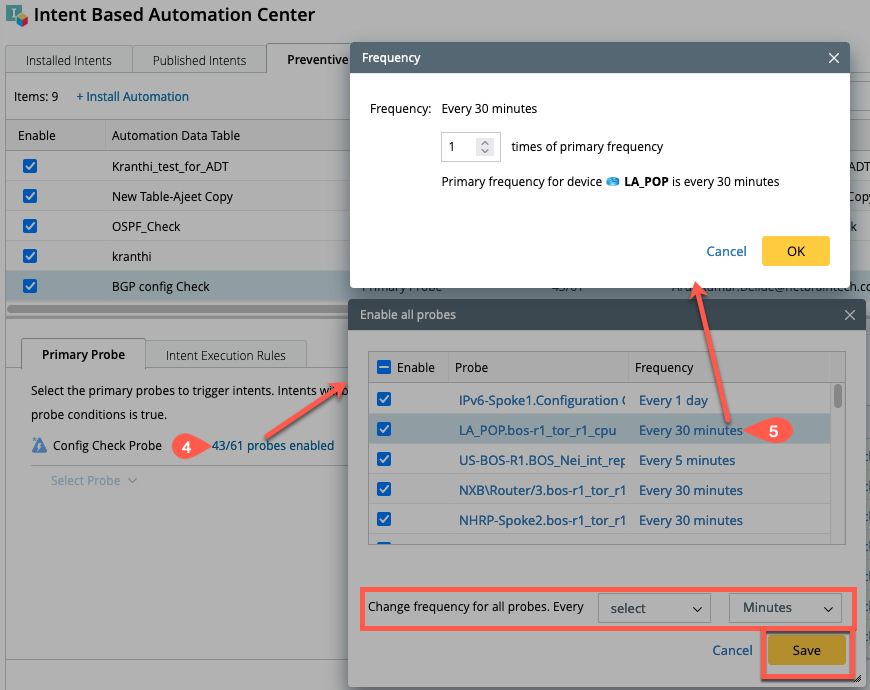 - The intent execution rules for Primary probe are same as the Looking Glass Probe except the primary probe do not have the option to select secondary probes.