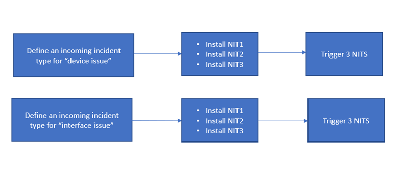 An incoming Incident Type can be associated with one or multiple virtual incident types and inherits the automations installed for these virtual incident types. This one-to-many relationship can help scale TAF.