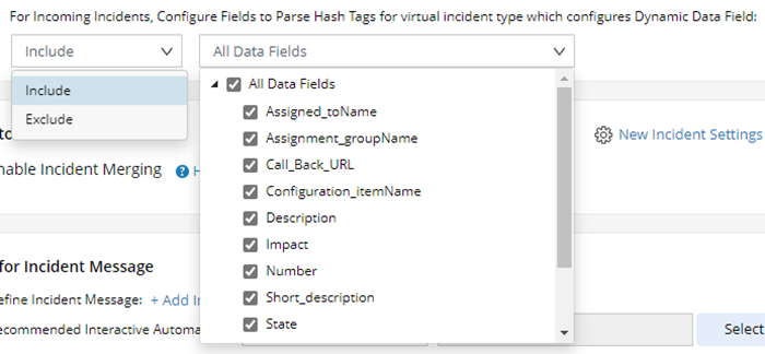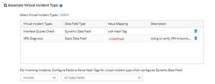 If the selected virtual incident type is with a dynamic data field, Hash Tag will pass the value to the data field.