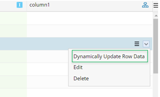 - From the drop-down menu of the target row of the ADT, click Dynamic Update Row Data.