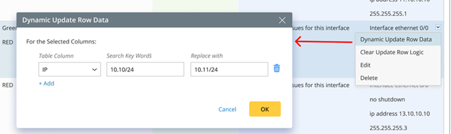 The data generated from the base table can be dynamically updated by the search-replace rules. You can operate on a target row to change the row data manually.