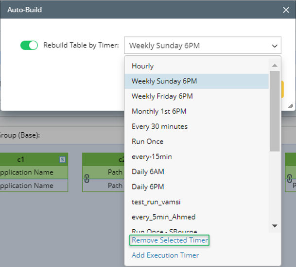 - In the pop-up Auto-Build dialog, turn on Rebuild Table by Timer, then select a proper Timer available in the system.
