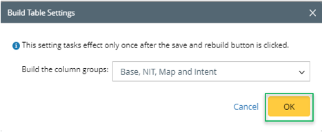 icon next to the Save and Build button. - In the Build Table Settings dialog, select column groups for building ADT data. By default, all column groups are selected.
