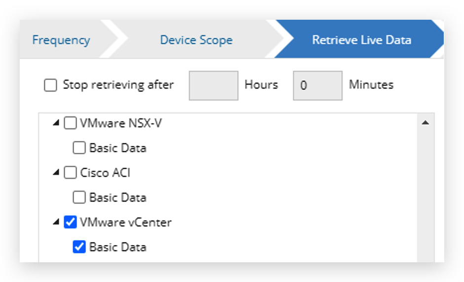 - On the Retrieve Live Data tab, select the VMware vCenter checkbox.