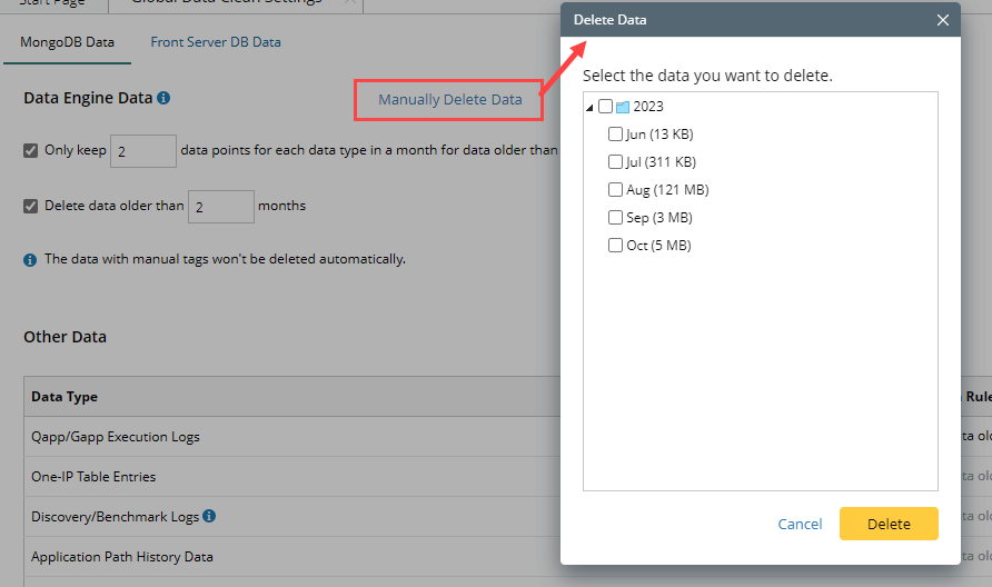 Delete data older than 3 months Note: The number of months must be between 0 and 65535. If you enter 0, the system will only keep the data in the current month and delete all aged data. |