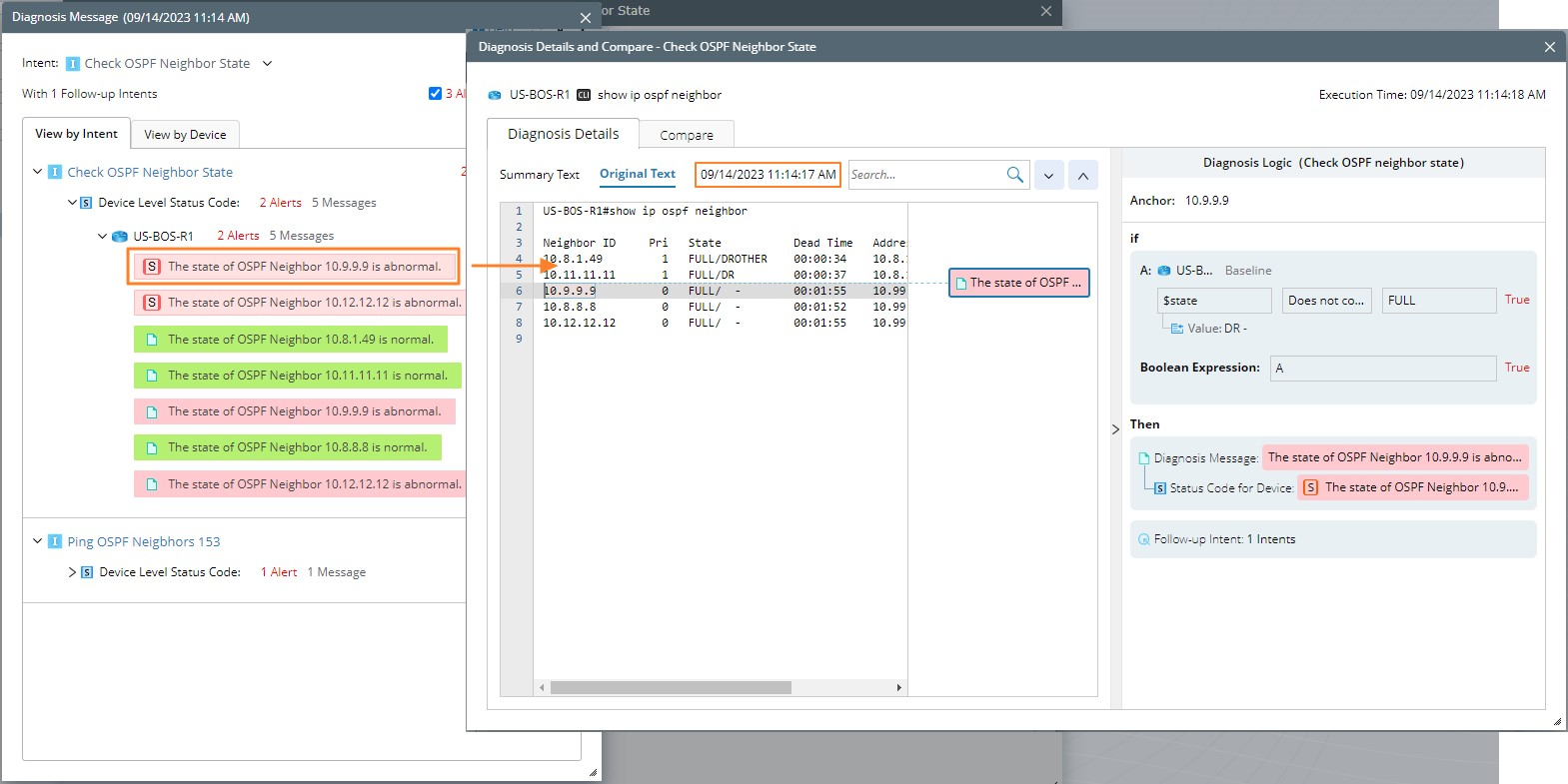 You are allowed to click the status code to view the diagnosis details, which is also a key function of intent. You can view more information here, auch as when this intent was executed.