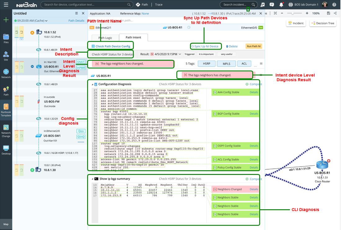In the Path Intent pane, you can run an NI or check NI results to locate and identify the issues.
