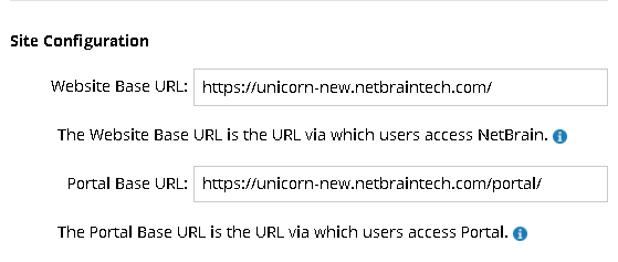 Note: Website Base URL must end with "/". - Portal Base URL — the base URL via which you access a portal.