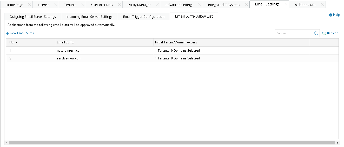 - On the System Management page, select Email Settings > Email Suffix Allow List.
