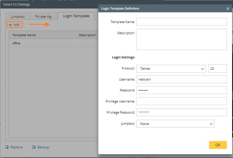 Note: You can also click Smart CLI Settings to define a login template to reuse the settings for future connections.