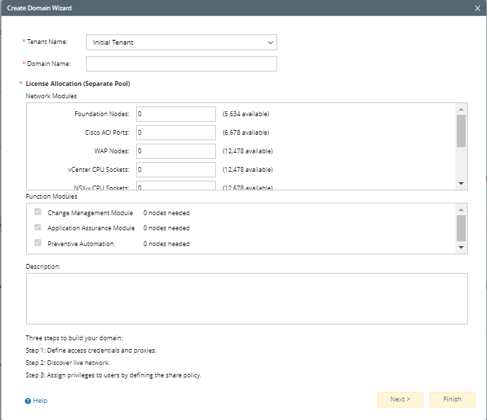 - In the pop-up dialog box, select the target tenant and click New Domain. The Create Domain Wizard is launched to guide you through the mandatory steps to create a domain.