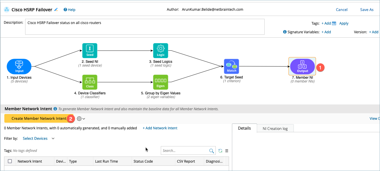 2023-Nov-03-R11.1a Creating Member NI Member NI generates member-NIs based on the definition in previous steps. Click Member NI, then click Create Member Network Intent.