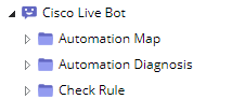 Power users created three group nodes: Automation Map, Automation Diagnosis, and Check Rule under the Cisco Live Bot in NetBrain IE.