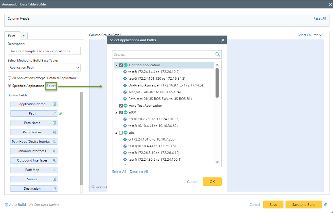 - All Applications except "Untitled Application": If you select this option, all applications are automatically selected for building base table except the untitled ones, which saves the trouble of manually selecting applications one-by-one by application name.