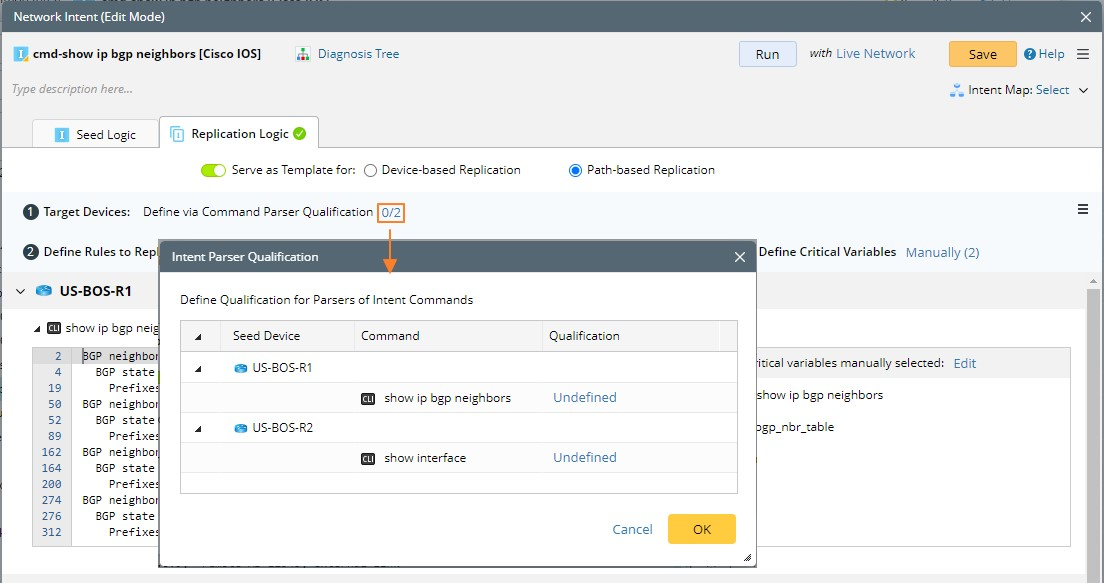 - Click Undefined in the Intent Parser Qualification dialog.