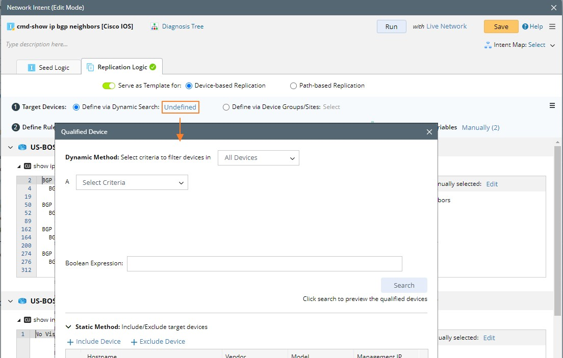 - Define the device qualification in two methods. See Search Devices by Formula for more details.