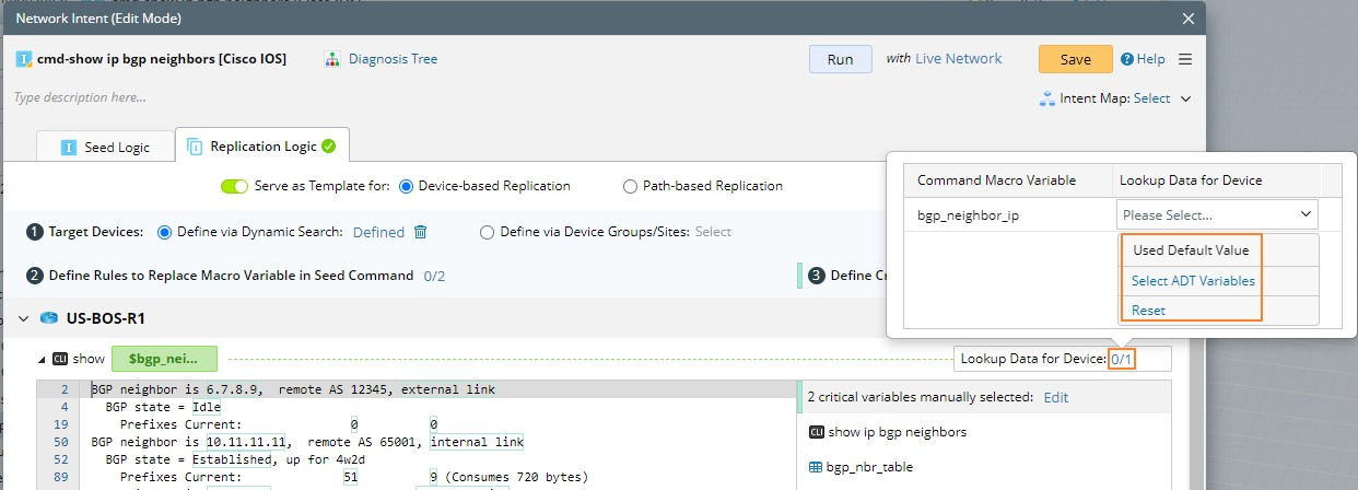 - Lookup Data for Device in device-based replication mode: Define the value bound to the macro variable for decoding devices. You can set whether to use the default value or ADT value for intent decoding.