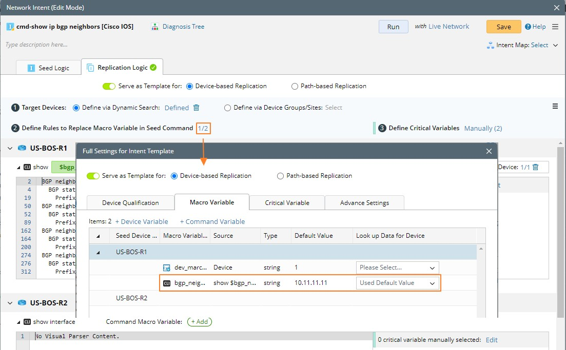- After the macro variable for seed command is defined, this variable is displayed under the Macro Variable tab in Full Settings for Intent Template.