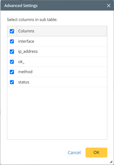 The sub table columns can be set by selecting columns in the Advanced Settings.