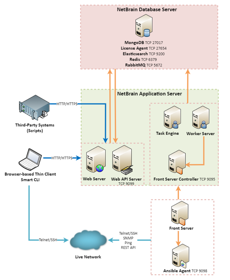 For hardware requirements, network connectivity requirements, and more prerequisites for deploying the system, please refer to NetBrain System Specification.