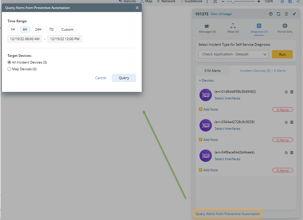 After the NI/NIC in Diagnosis is executed, the execution results will be sent to the incident message in the diagnosis pane.
