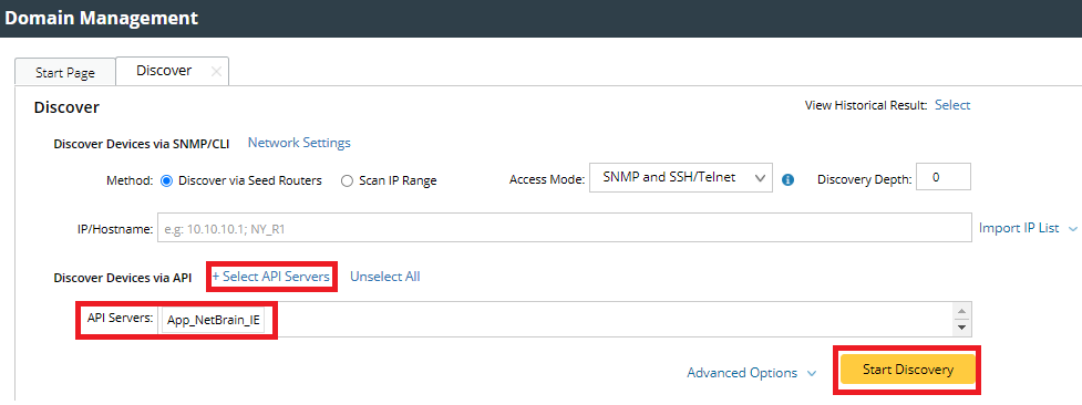 - Click + Select API Servers. Select the GCP API Server that you created. Click Start Discovery to start the GCP discovery.