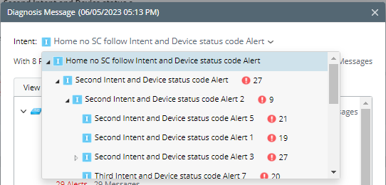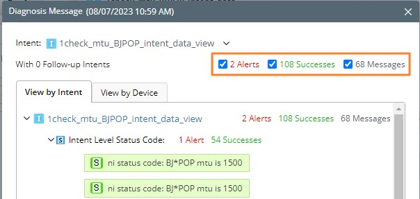 - Click this number and the Diagnosis Message dialog pops up. You can view the status codes by intent or by device.