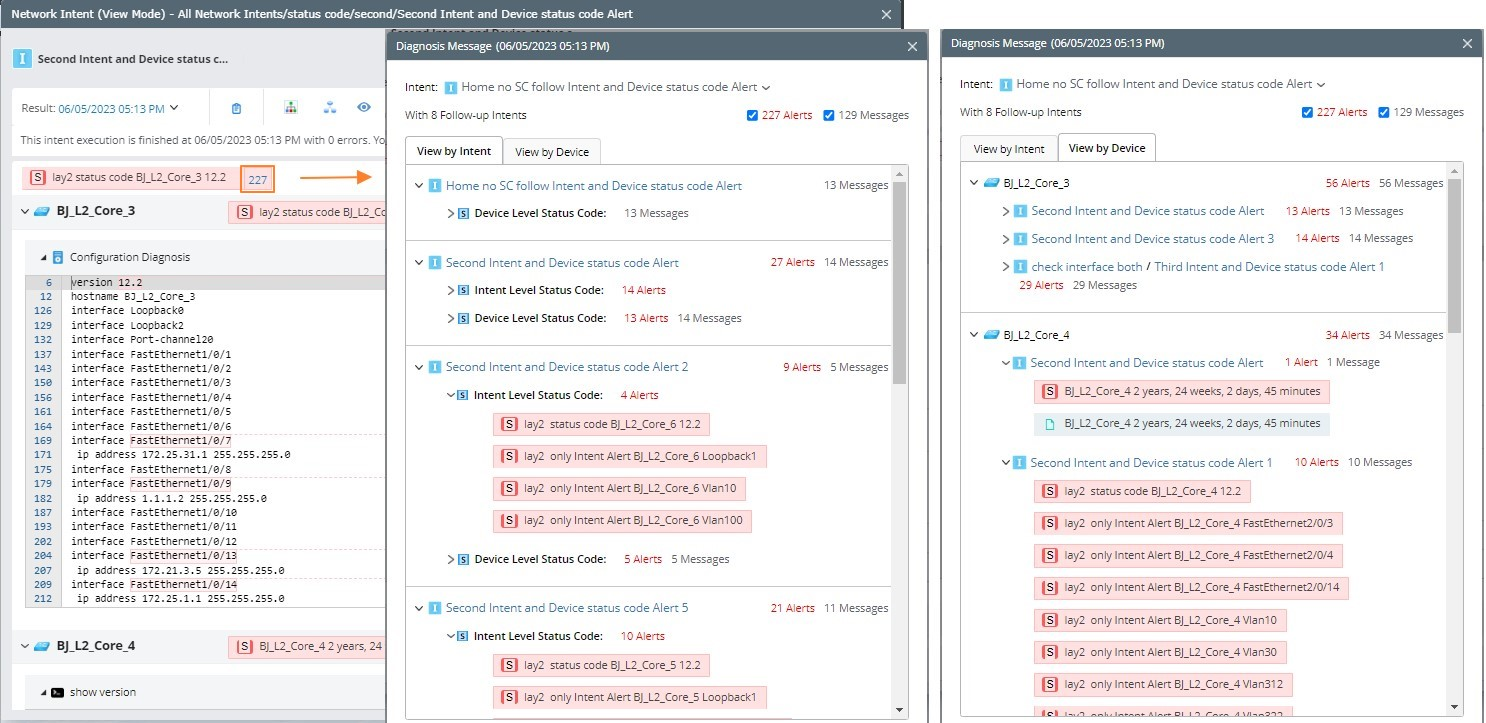 - Up to 20 status codes at each intent/device level can be displayed; the rest can be viewed by clicking View More.