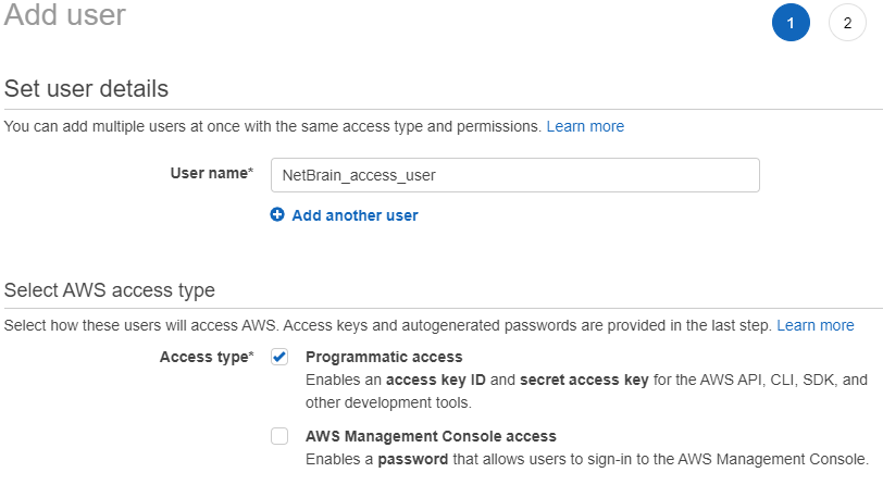 Note: If you add multiple AWS accounts to NetBrain, you must repeat these steps for each account. |