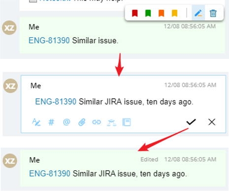- Collapsed mode (default mode): Only the header and signature of a message are not displayed. Also, you can view more conversations in the incident pane in the collapsed mode. For the edited, marked, and pinned messages, the headers are reserved in the collapsed mode so that you can view the time of the operation on the messages.