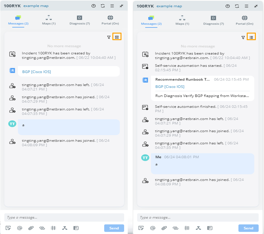 Two Modes for Messages in the Incident Pane