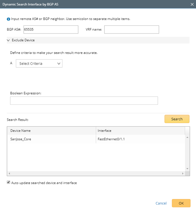 - (Optional) Click Exclude to select CE devices or interfaces that you want to exclude from the MPLS cloud.