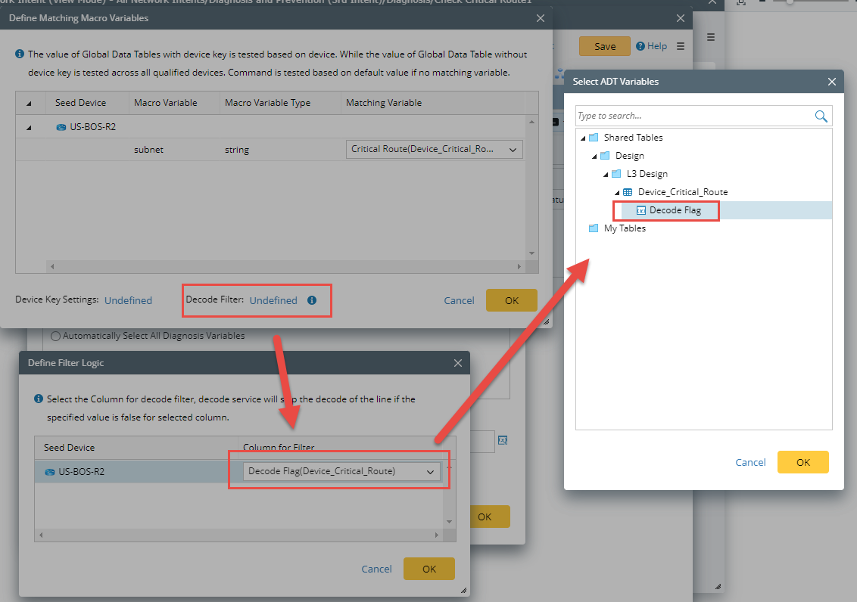 Define decode filter if you want the system to decode part of the defined value in ADT column. The ADT row with value of False on selected column will not participate intent decode process.