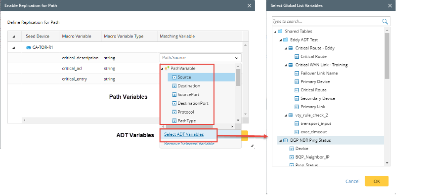 Enable the replication for Path, and a window Enable Replication for Path will pop-up to select the Path Variable used for the Seed Device Macro Variable.