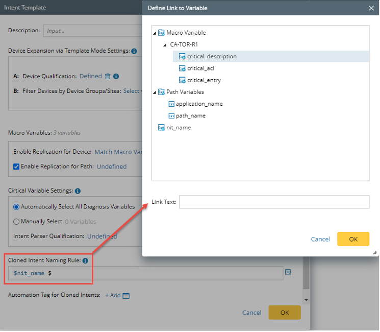 - Replication for Path: When an Intent Template is used for a Path, it can be used as input and passed to the Macro Variable for replication.