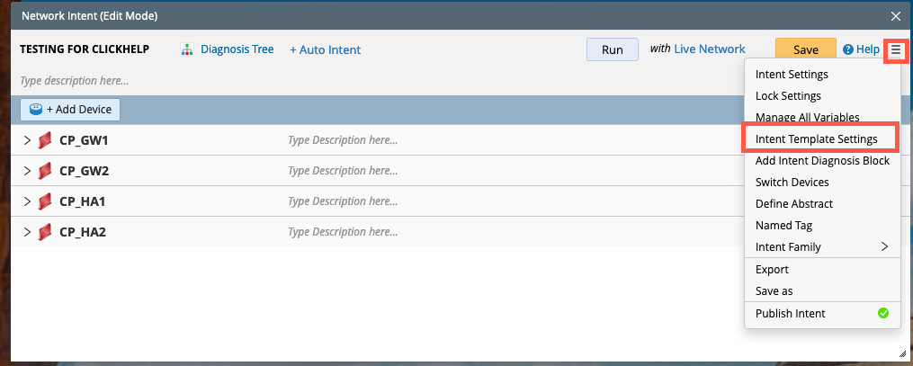 In the NI editing window, select Intent Template Settings from the