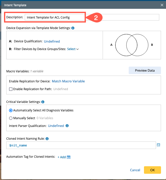 Cloned Intent Naming Rule: Using the following variables, name the cloned intent for easy reference.