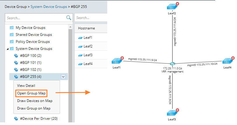 Draw Devices on Map will add the devices in the device group to the current map. If no map is opened, the system will automatically create a map for those devices and show L3 topology links by default.