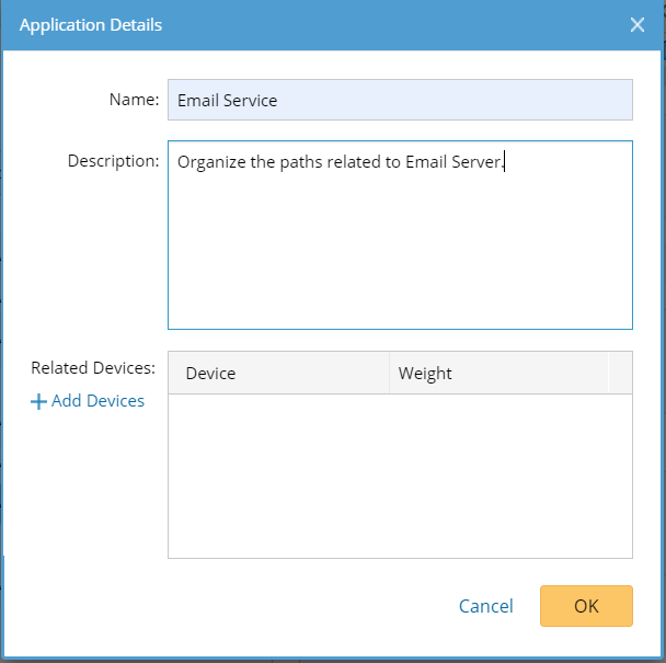 - (Optional) Add related devices to the application and define a weight for each device.