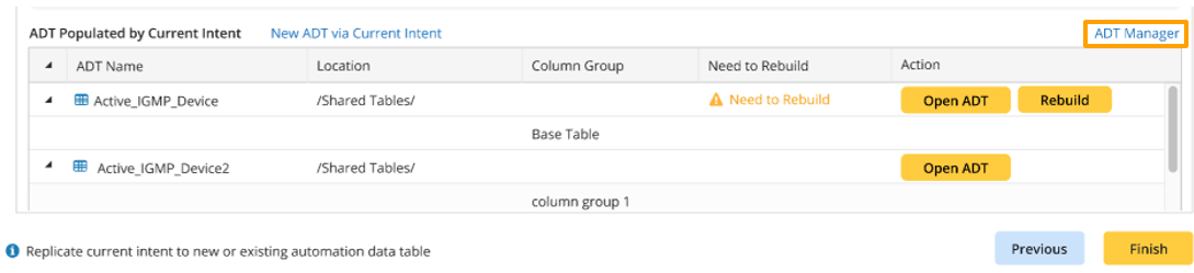 The system supports opening ADT Manager from the Automation Data Table tab of the Wizard to manage ADT and perform more operations on the ADT you have edited in the wizard, for example, creating ADT with other data source (map-based ADT, Path-based ADT, etc.), adding columns of non-intent data, deleting ADT, etc.
