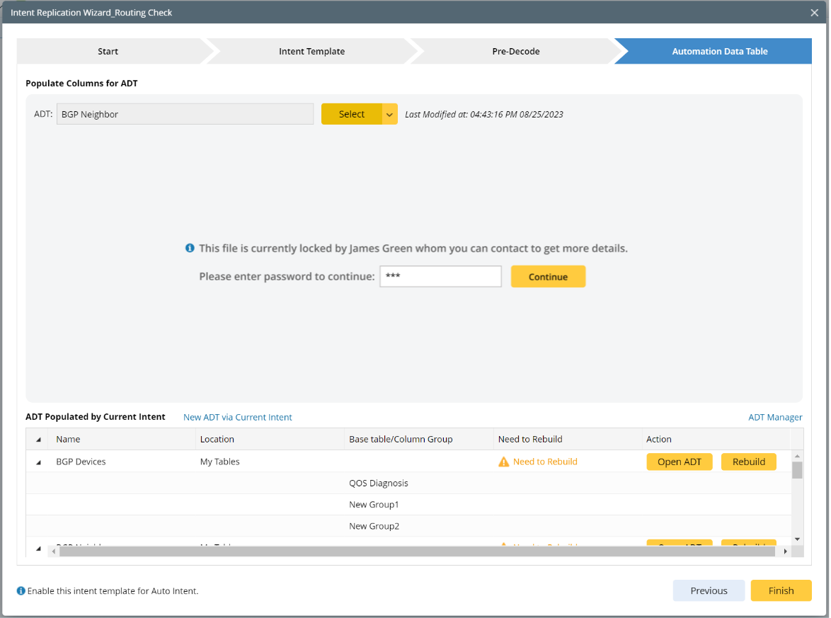 ADT can be locked by a user in ADT Manager. When other users select the locked ADT to operate in Intent Replication Wizard, different notices are given in different scenarios.